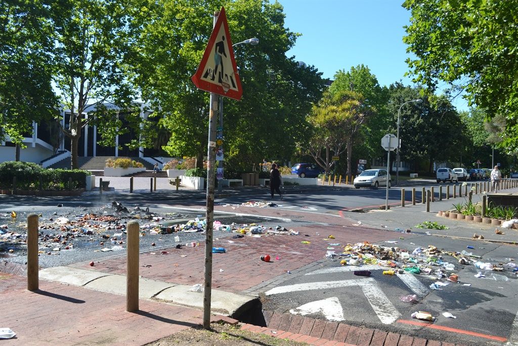 Brande, dromme en gemors wat oral gestrooi is, was weer orals te sien soos werkers by die universiteit betoog.