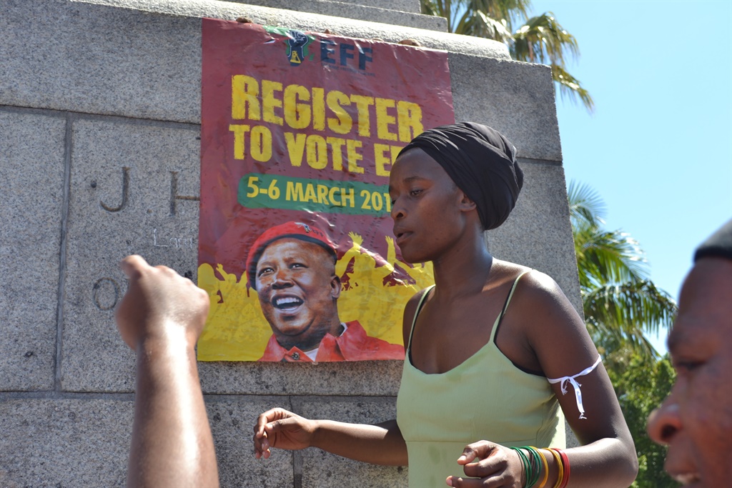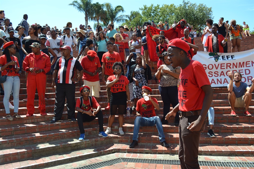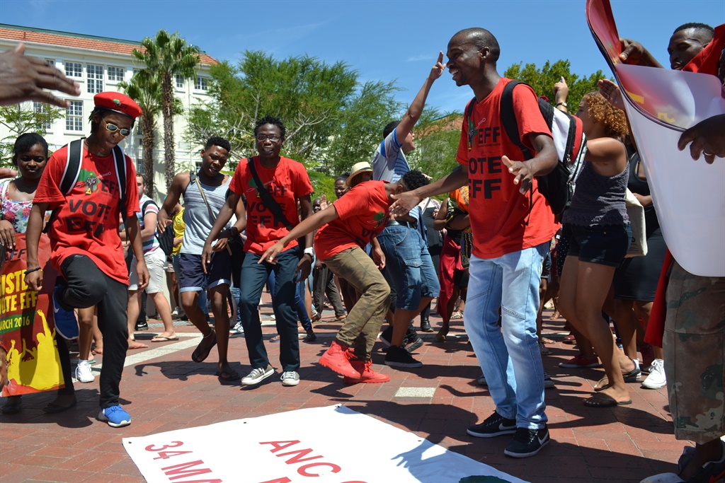 Lede van die EFF Student Command het Donderdag 3 Maart by Universiteit Stellenbosch betoog teen onder meer die viktimisering van swart studente.