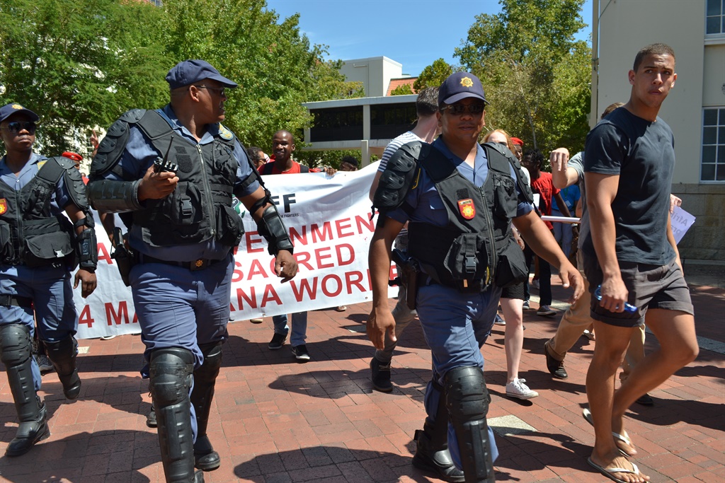 “Gerugte dat die SAPD diegene wat aan die protesoptog deelgeneem het, probeer verhoed het om op die kampus te kom, is ongegrond,” lui ‘n verklaring deur die US.