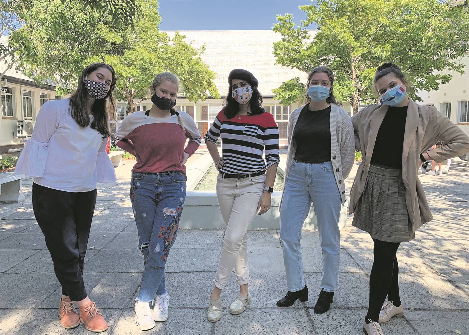 Die Hoër Meisieskool Bloemhof se Fransleerders het voorverlede week La Journée internationale de la Francophonie (Internasionale Frankofoniedag) gevier. Die matrieks is Jana Vorster, Anaïs Herman, hul opvoeder madame Steffy Delmage-Loxton, Alexandra Ross en Luchuané Hechter. Foto: Stephan Meyer