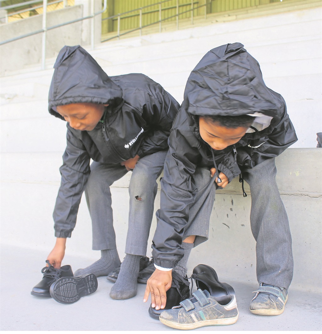 Kaalvoete was egter net so volop soos glimlagte en opgewondenheid toe die leerders hul skoolskoene sommer ook uitgetrek het as deel van ’n skenking aan die Amy Foundation.