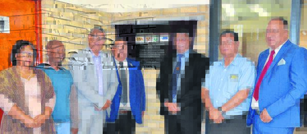 At the opening of the new hall were from left Deputy Mayor Wilhelmina Petersen, Regin August (chairperson of the school governing body), Juan Benjamin (Director of Cape Winelands), Malvin Kulsen (Principal), John Matthews (CEO of Garden Cities), Dr Clinton Goliath (WCED Circuit Manager) and Nolan Prins (retired Deputy Principal).