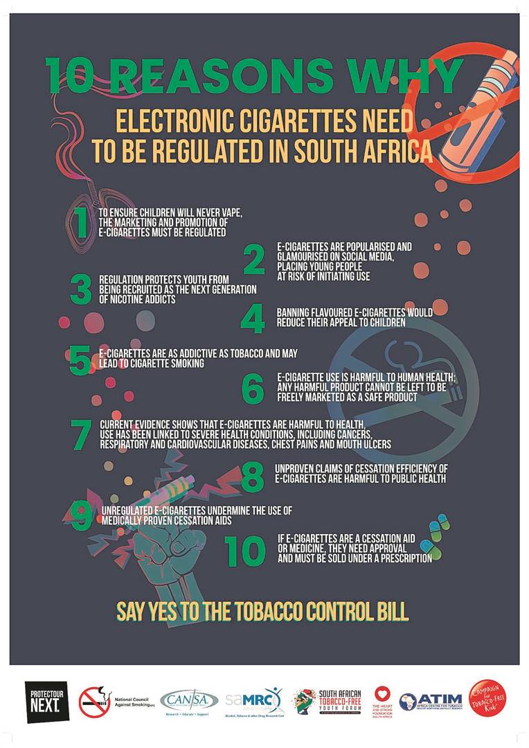 Schools can access Cansa’s website for further information on educational material for their no-tobacco campaigns. The organisation is advocating for the passing of the Control of Tobacco Products and Electronic Delivery Systems Bill. The public can help Cansa strengthen tobacco control efforts by signing up as volunteers.