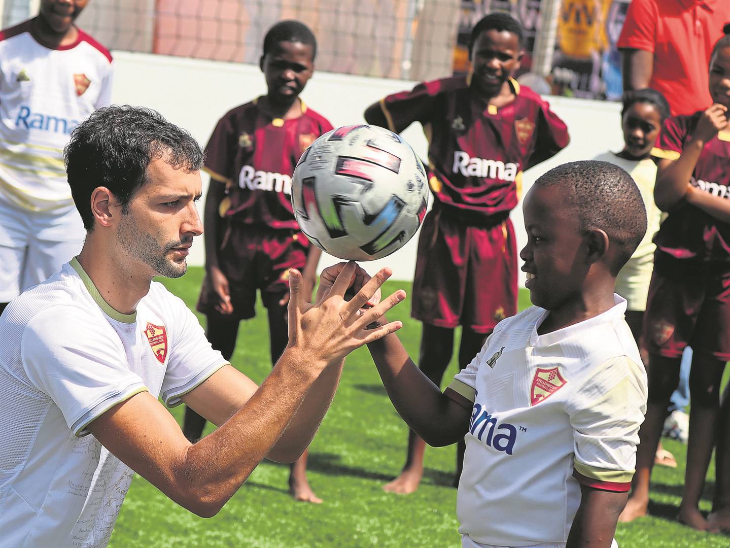 Stellenbosch recently welcomed two international stars to its streets when five-time football freestyle world champion Aguska Mnich and two-time football freestyle world record holder Patrick Bäurer (far left) were hosted by Stellenbosch Football Club. Aguska and Patrick joined the club and the Open Play Foundation at the new GreenSource synthetic pitch in Khayamandi, where 60 children from Khayamandi Primary School were treated to a live performance and an educational workshop by the pair. Later, the freestyle superstars were at the Danie Craven Stadium to watch Stellenbosch FC defeat rivals Cape Town City 1-0 in a derby encounter and delivered a memorable half-time performance for the home crowd during the match. They also attended and performed at a youth sports awards ceremony in Idas Valley over the weekend before embarking on a series of small outreach events for children in Cloetesville and other communities surrounding Stellenbosch.