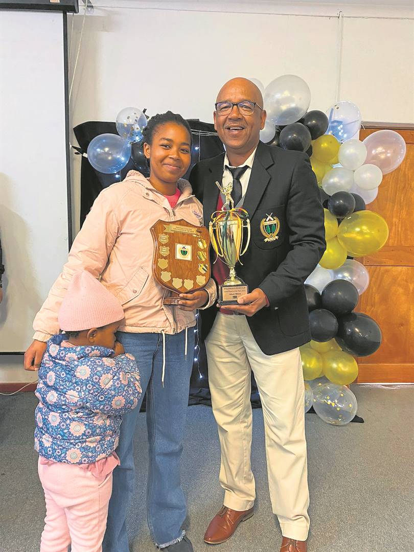 Denowen Williams oorhandig die prys vir die meisiespeler wat die beste vordering gemaak het, aan Erin Leith.Foto: