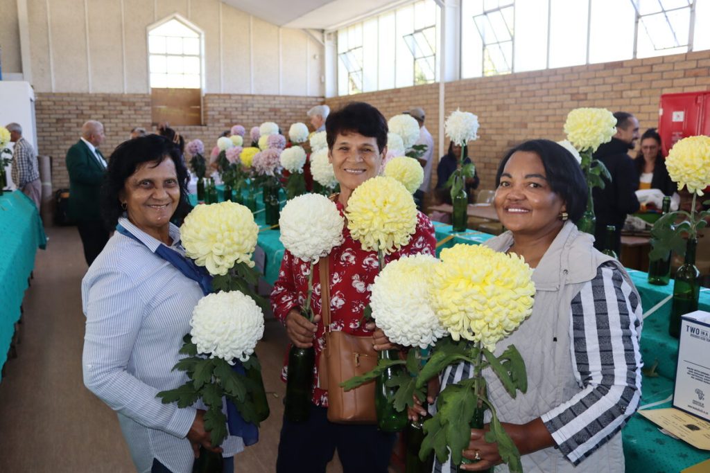 Die Chrysanthemum-skou het die afgelope naweek –soos elke jaar – weer in Pniël plaasgevind. Die krisante het oudergewoonte die plaaslike kerksaal vol gestaan en na afloop van die beoordeling het besoekers die kans aangegryp om hul eie krisante teen ‘n appel en ‘n ui huis toe te neem. Die Paarliete Anne de Jager en Wendy van Diemen, asook Pniëller Lindie Noland, het seker gemaak hulle het die beste blomme gekry om huis toe te neem.