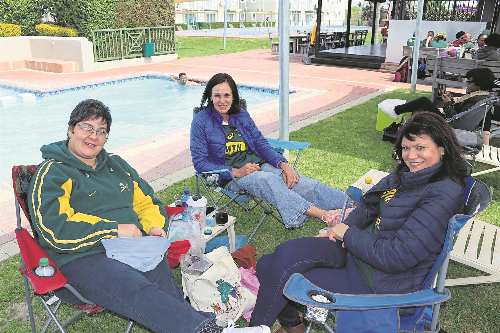 Kapt. Wilna Barnard, kapt. Herlien van Zyl en lt. kol. René Matthee het agteroor gesit en gesels terwyl die potte aan die prut was. Foto: Barend J Williams