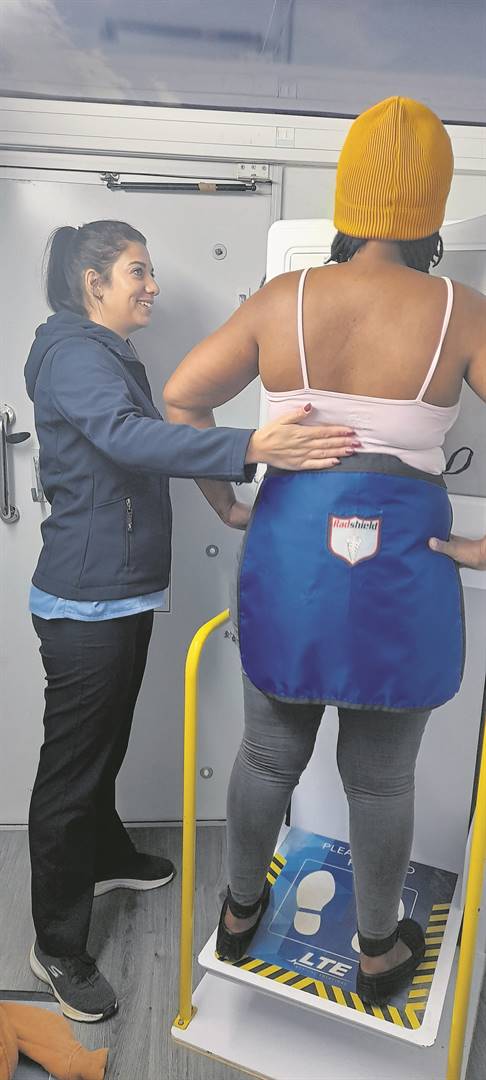 The mobile service allows the on-board radiographer Eunel Kleinhans to take a chest X-ray of the patient where the mobile is parked. Within minutes she provides the image and report to the patient.