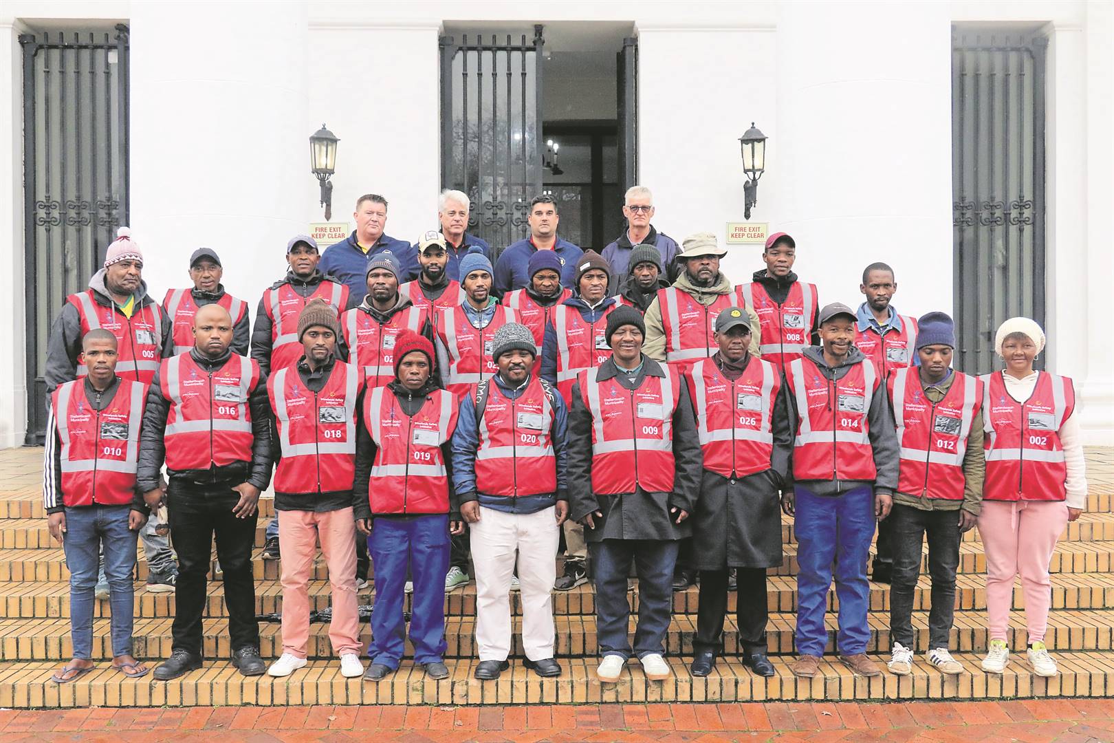 The Winelands Safety Initiative (WSI), with the support of Stellenbosch Municipality, Community Wolf and Visit Stellenbosch, distributed new red safety bibs and sun hats to parking attendants from Khayamandi operating in the Stellenbosch central business district.