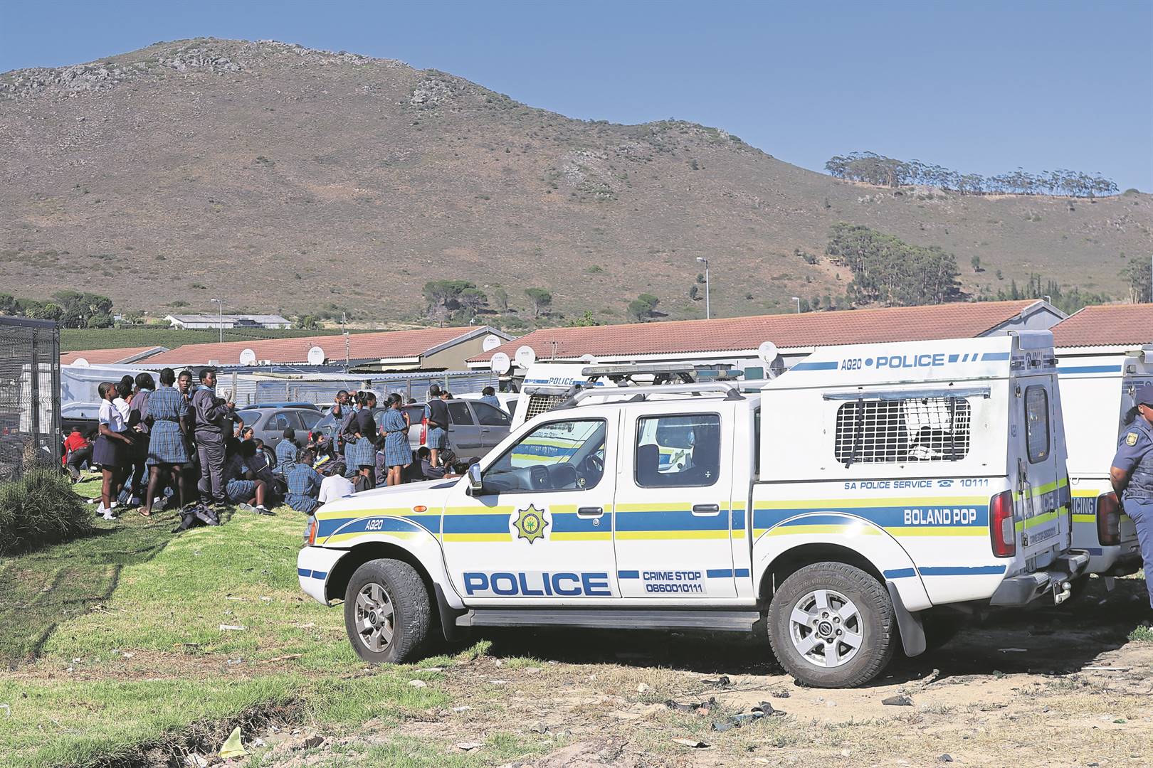 There were no lessons at Klapmuts Hill Primary and High School on Tuesday (18 February) after parents and community members refused to allow learners through the school gates. This comes after parents of the primary school were informed English will no longer be the language of instruction, following the departure of the teacher of the Grade 5 class. Police were on scene to keep tensions from boiling over. Read the full article on page 7.Photo: Yaël Malgas