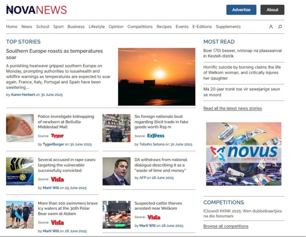 Novus Media stel amptelik hierdie week NovaNews.co.za, ‘n omvattende nasionale nuusplatform met bydraes van 21 gemeenskapskoerantredaksies van reg oor Suid-Afrika, bekend.