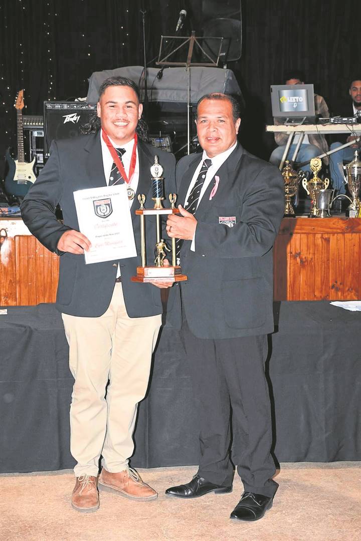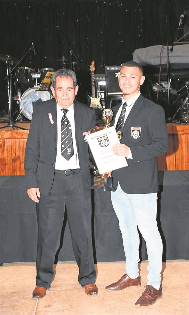 Cayll Mansfield is as Speler van die Jaar aangewys. Winston Stubbs, die voorsitter van die klub, oorhandig die trofee aan hom.Foto: