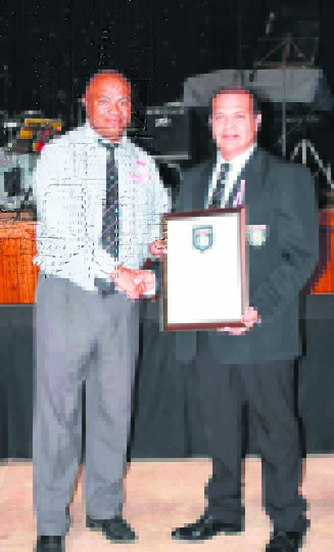Rodger Cupido ontvang sy Presidentstoekenning by Winston Stubbs (voorsitter).Foto:
