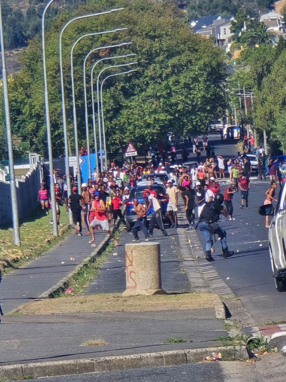 “Die span het onder leiding van kapt. Sinyeke van die Cloetesville-polisie teruggetrek. Die vyandige skare het dit vir die beamptes – veral die Rooimiere – moeilik gemaak om hul voertuie te bereik. Een Rooimiere-lid is beseer toe ‘n klip sy helm getref het, maar geen ander personeel of voertuie is beskadig nie,” sê Grobbelaar.