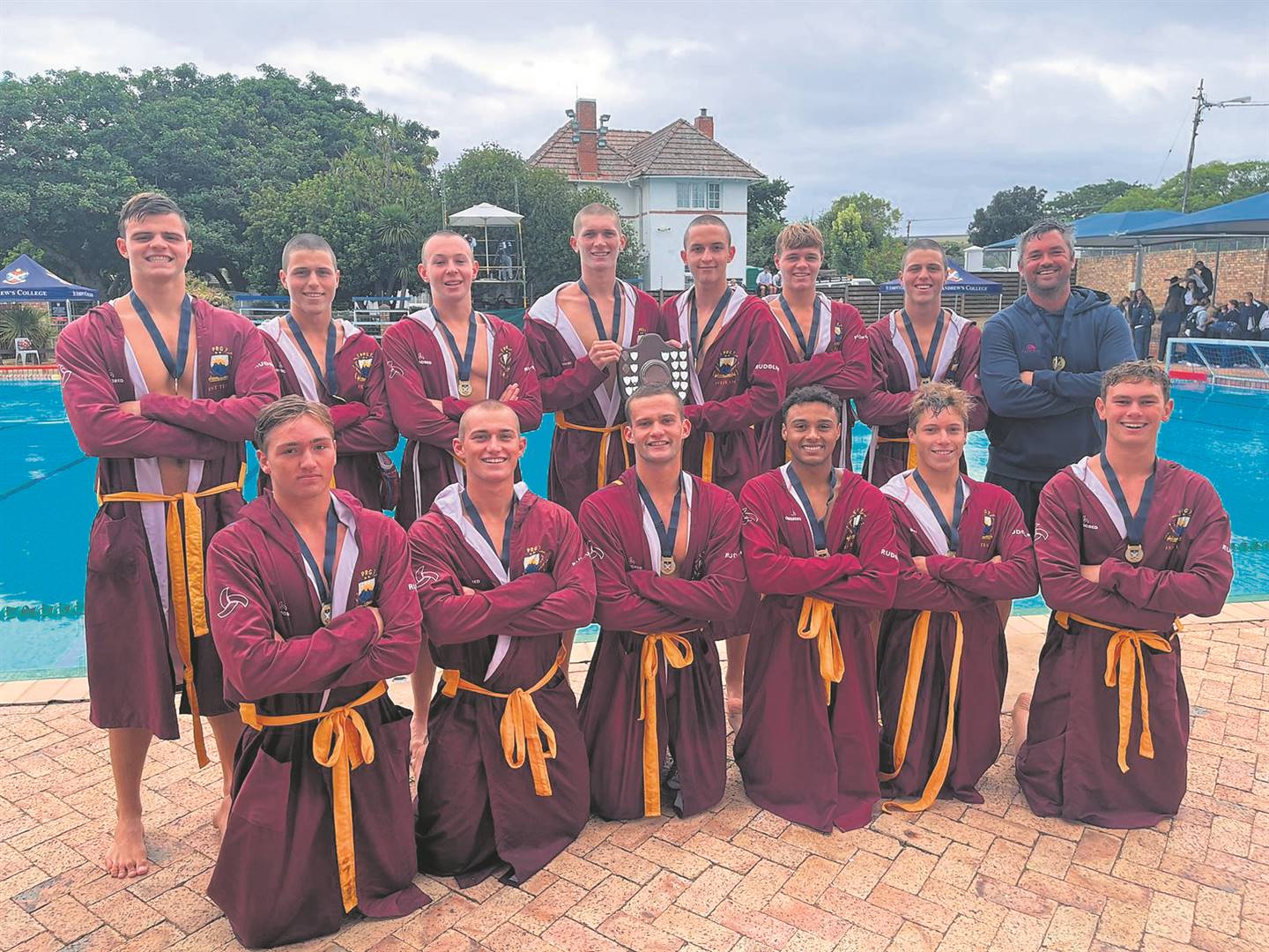 The under-19A water polo team of Paul Roos Gymnasium (PRG) participated in the annual St Andrew’s Shield in Makhanda (Grahamstown) from Friday 27 to Sunday 29 January. Most of the top water polo teams in the country were in action in the tournament, which saw PRG remain unbeaten throughout the group stages. The team progressed to the final after a hard-fought battle with St Andrew’s College in the semi-finals, and came head-to-head with Rondebosch Boys’ High in the final. The local lads pulled off a remarkable comeback to win 5-3 and bring the trophy home. The victory is the culmination of 10 years’ hard work in the PRG water polo programme. Coach Vaughn Marlow credits the time and effort of this year’s players as well as the commitment and dedication of old boys who were part of the programme when winning trophies were not always a reality. “Without these men we wouldn’t have the programme we now do.” Thanks also to Rull Csaba from the Eger Club in Hungary, who has also been involved with the sport at PRG for over a decade.Foto: