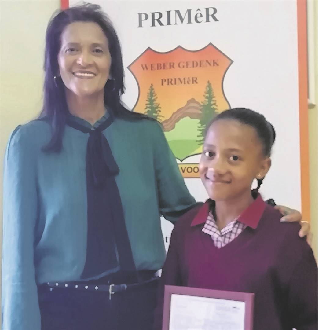 Chanika Arnolds van Weber Gedenk Primêr is ’n toegewyde musiekleerder betrokke by Jamestown-Sounds waar sy Dinsdae blokfluit speel. Sy neem Donderdae ook ekstra klase met behulp van ’n musiekstudent, Jessica Daniels (links), by die Konservatorium van die Universiteit Stellenbosch. Sy het in September die Unisa-musiek-eksamen afgelê en met ’n uitmuntende 95% geslaag.