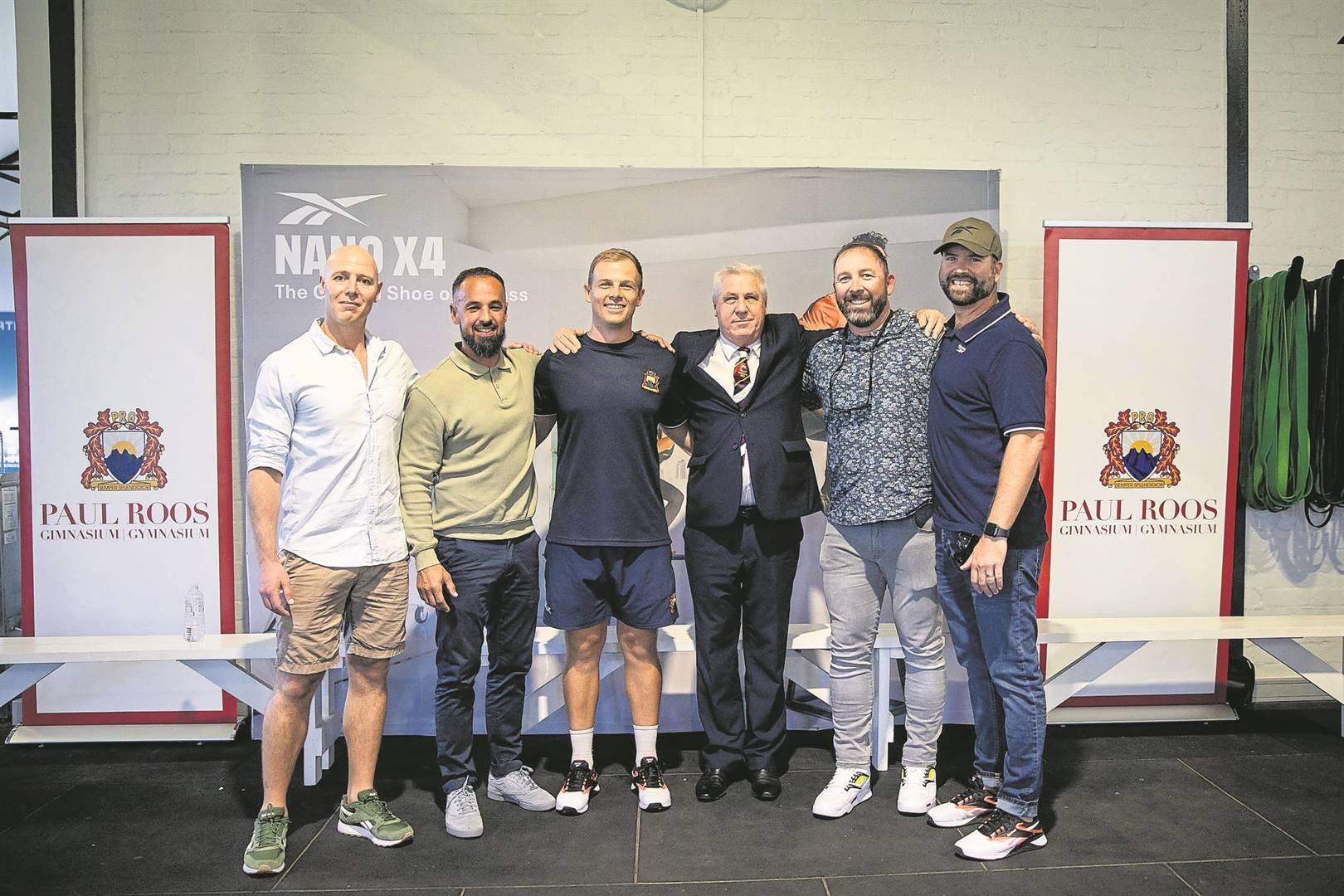 Paul Roos Gymnasium (PRG) recently announced its partnership with Reebok South Africa during the launch of the fitness brand’s new Nano X4 training shoe. PRG rugby players, the netball players of Hoër Meisieskool Bloemhof and other industry professionals put the remarkable shoes to the test at the newly established PRG High Performance Centre. Pictured at the launch (from left) are Marc Bernard (Gym Concepts), PJ Morilly (Reebok), Elric Pretorius (PRG head of conditioning), PRG rector Andre van Staden, Thomas Wirth (Gym Concepts) and Steve Young (Reebok). Photo: Roy Potterill Photography