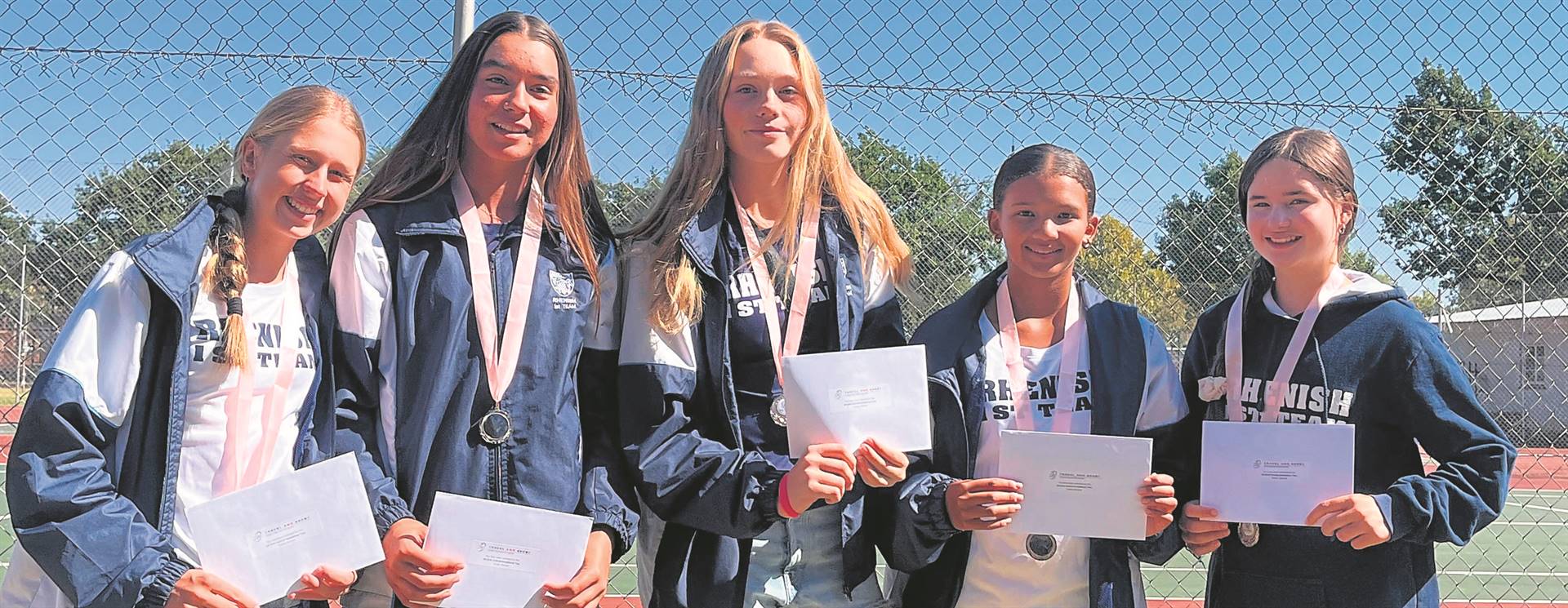 The Rhenish tennis players (from left) Jenna Petripher, Katrien Booysen, Lisa-Marie du Toit, Jenna Theron and Christie Kotze also won silver after they lost 3-0 to C&N Sekondêre Meisieskool Oranje in the final. The tennis team also recorded a flawless run to the final.