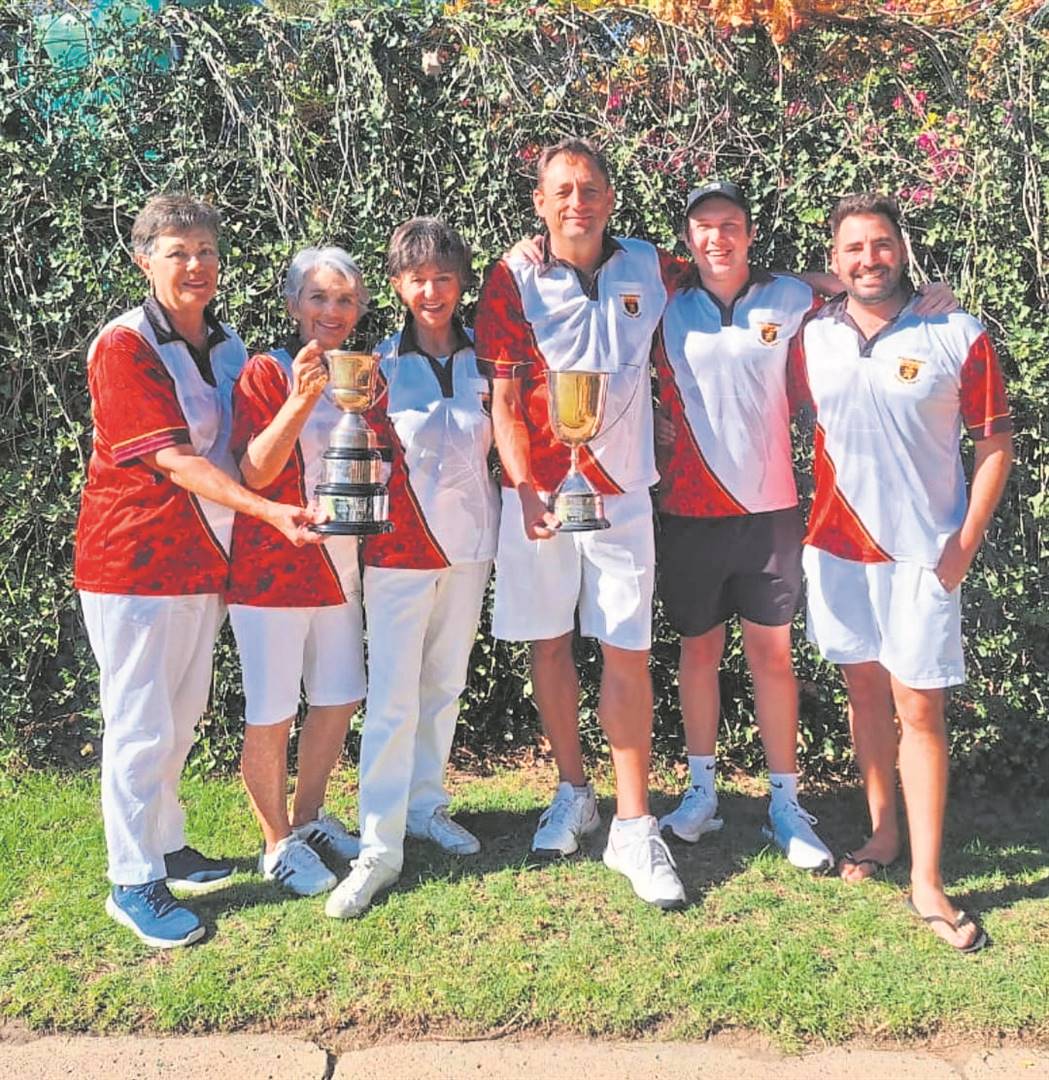 Die Stellenbosch-rolbalklub het goeie rede om trots te wees op klublede vir hul onlangse uitnemende rolbalprestasies. Van links het Bertha Lane, Mariana Engelbrecht en Marlene Lambrechts die tweede plek (silwer) verower in die Westelike Provinsie Vroue-Trips-kompetisie, terwyl AD “Adriaan” Jordaan, JP Fouché en Adam Maurice Zartz dieselfde prestasie in die Westelike Provinsie Mans-Trips-kompetisie behaal het.