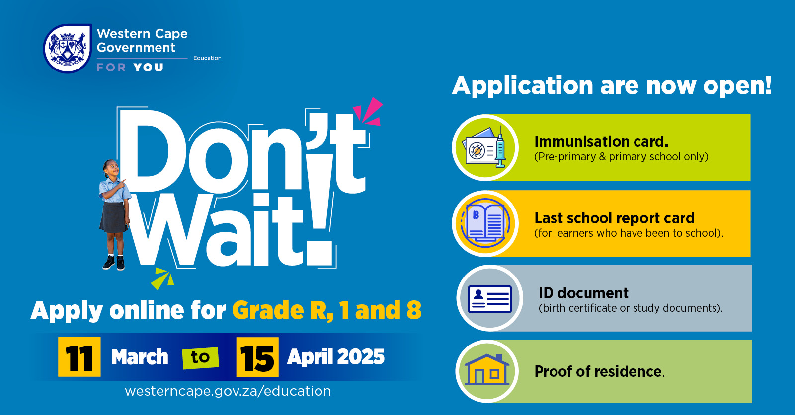 V More information on the admission process can be found at: https://wcedonline.westerncape.gov.za/admissions.