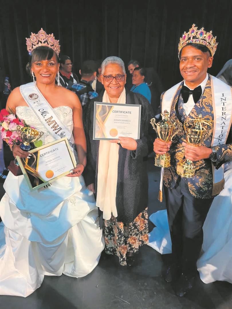 Two directors of SJ Community Hearts in Cloetesville were crowned at a glitzy ceremony held in the Mother City on Saturday 27 August. Sonja Adonis (left) was crowned the new Miss MWI International Elite and Johan Daniels (right) is the new Sir MMI International Ambassador. With the two winners is Annie Daniels, Johan’s proud mother. The event was scheduled to take place in Dubai, but was moved to the Cape. In a statement SJ Community Hearts said it is proud of the achievements of the two locals and wished them good luck with all the work ahead.