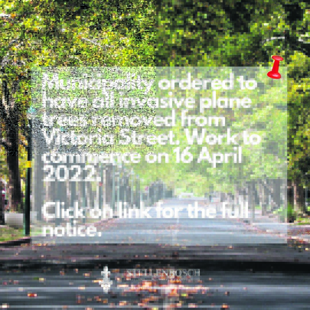 Die Stellenbosch-munisipaliteit het Vrydagoggend (1 April) aangekondig hy is beveel om alle indringerbome in Victoriastraat te verwyder.