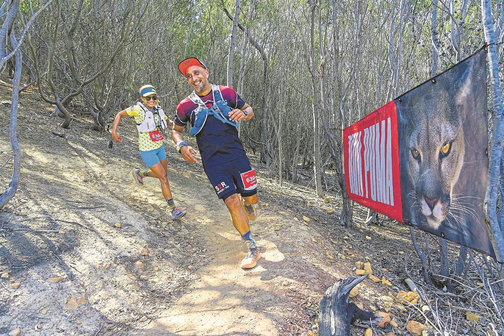 Trail running legend Nicholas Rupanga will celebrate his 12th running of the AfricanX Trailrun at the picturesque Houw Hoek Hotel the weekend of Friday 17 – to Sunday 19 March. Other well-known South African trail runners to look out for will include: Nonhla Tau, Franza Landman, Blake Dyason and Ashraf Orrie. Pictured here are wife and husband duo Rolda and Ashraf Orrie (Plumstead) in action during the 2022 AfricanX Trailrun. Photo: Chris Hitchcock