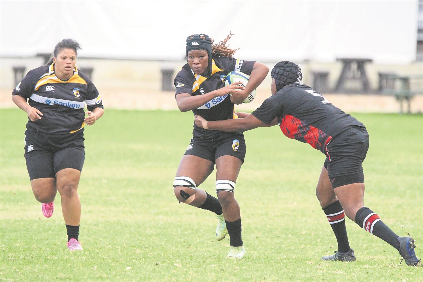 Die Boland Dames bly op die wenpad nadat die span Saterdag op die Hoërskool Hermanus se rugbyveld die EP Queens behoorlik laat les opsê het met ’n telling van 49-0. Die vroue het met dié wegholoorwinning oor die Queens gewys waarom hulle tweede op die punteleer is. Hulle het nie net voor oorheers nie, maar die giftige agterlyn het behoorlik die drieë ingeryg. Foto’s: Sydney Armoed