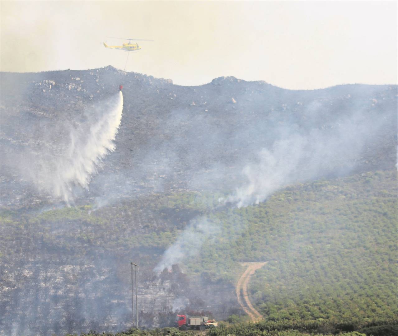 Overstrand-munisipaliteit en die Overberg-distrikskmunisipaliteit se spanne het ook alles in hul vermoë gedoen om die brand in bedwang te probeer kry.