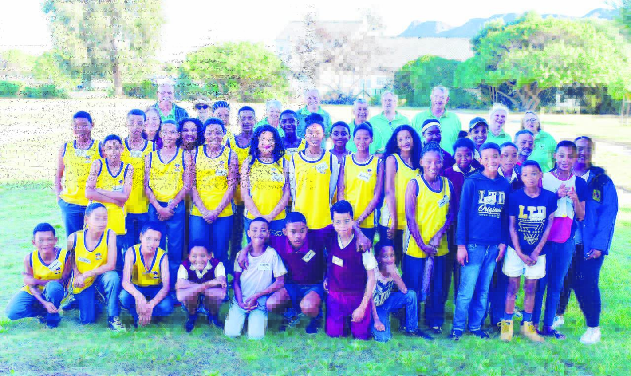 Vrolike jukskeispelers van die Laerskool Mount Pleasant nadat hulle verlede Vrydag die interskole gewen het.