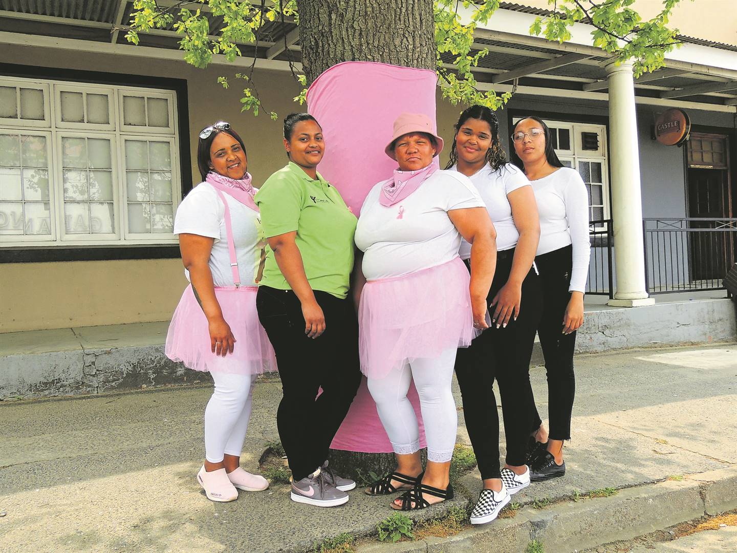 Oktober is Borskankerbewusmakingsmaand, en volgens die Kankervereniging van Suid-Afrika (Kansa) is borskanker die mees algemene vorm van kanker wat Suid-Afrikaanse vroue beïnvloed. Die 2019-register wys daarop dat een uit 27 vroue die gevaar loop om borskanker op te doen, en dit is waarom die Caledon-museum jaarliks, in samewerking met die Caledon-biblioteek en hul YeBoneers, ’n bewusmakingsveldtog hou. Nie net het hulle pienk strikkies en pamflette uitgedeel nie, maar ook verskeie bome in die middedorp se stamme in pienk materiaal toegedraai. Die vroue wat deel van die veldtog is, is Bernedine Esau, Chanell Plaatjes, Gaylene Newman, Nicolle Plaatjies en Gabby Bezuidenhout.Foto: Mitzi Buys