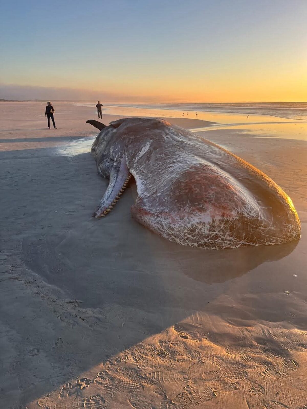 Don Marx, a whale observer knowledgeable about the various species, particularly those off the Southern Cape and False Bay coast, commented on Facebook: “When first light broke this morning my father and mom went to check on the whale but it it had sadly died. They sent me through some photos of this truly incredible creature of the deep. We don’t encounter many sperm whales off the coast of South Africa; I saw a pod of four once, off the canyon at Cape Point.”