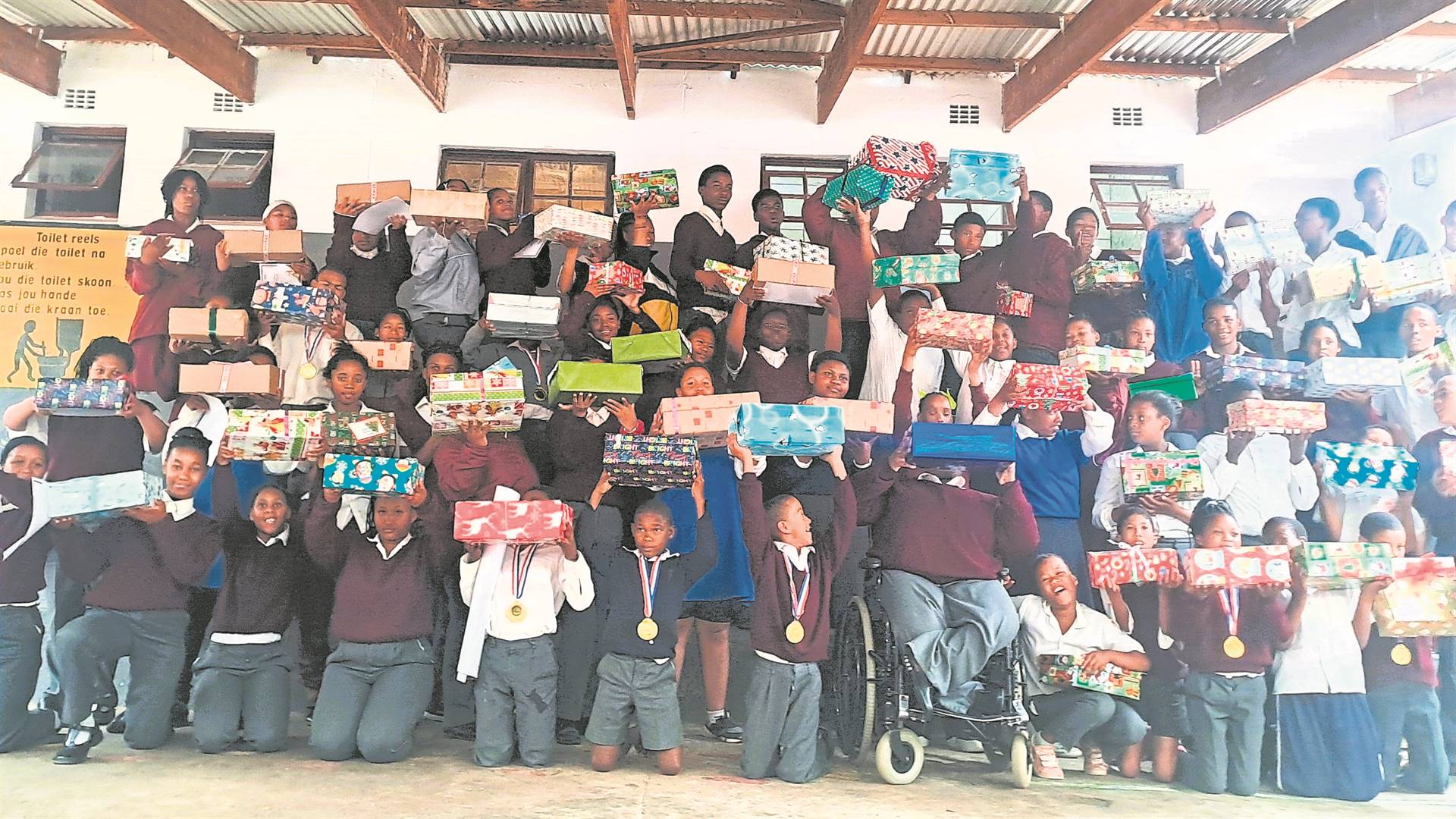 Huge smiles and excited cheers greeted the staff of Hermanus Times when they dropped off more than 100 festively wrapped Boxes of Love for the learners of Mispah School for Learners with Special Educational Needs in Elim last week.