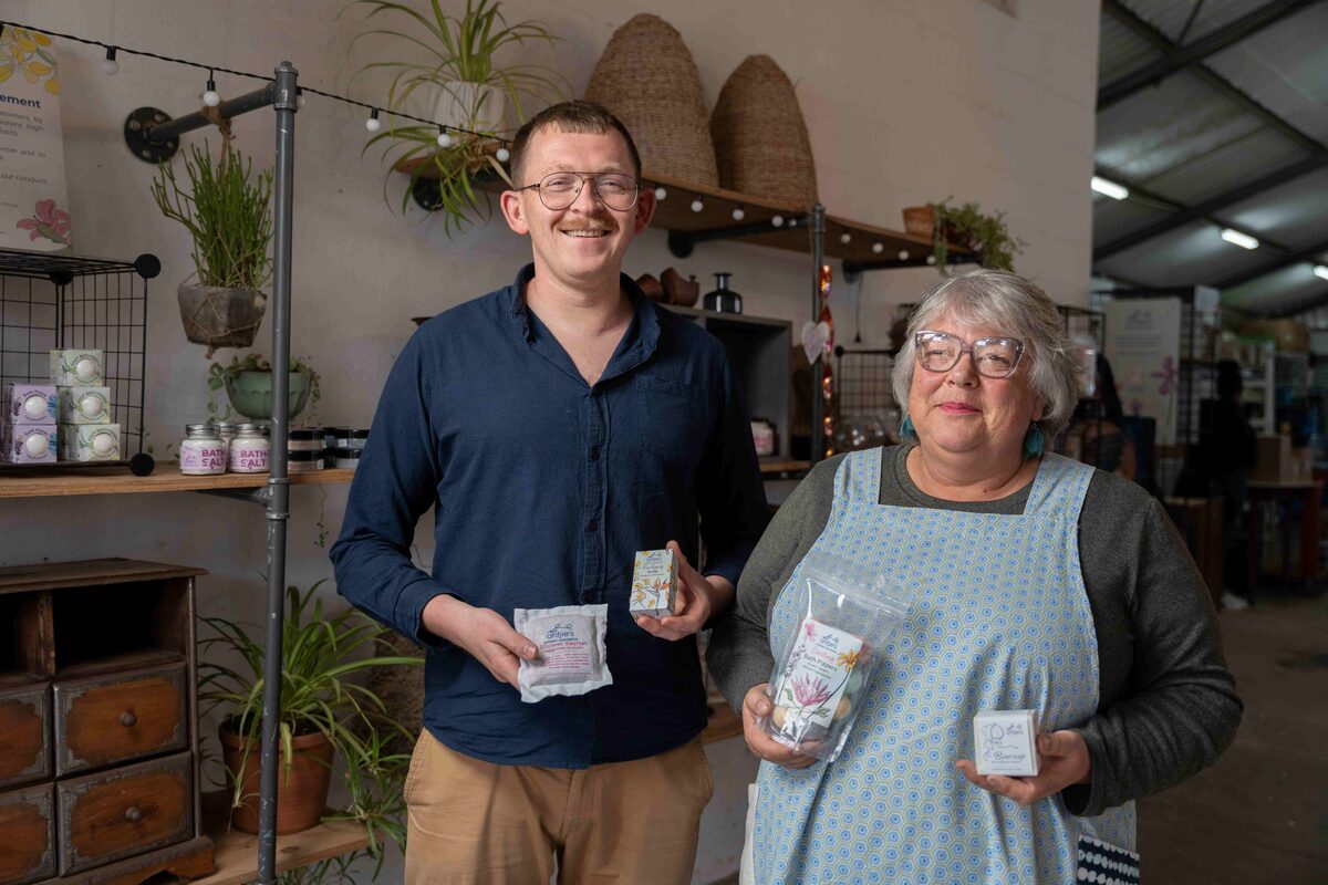 Haar produkte sluit in handgemaakte seep, boerseep, badsout, bruisballetjies, tee en die kenmerkende stortsakkies – seep toegedraai in ‘n lapagtige sakkie vir maklike gebruik en sagte afskilfering. Nicolene se seun, Christoff, speel ‘n sleutelrol in die verpakking: “Toe ons die stortsakkie geskep het, het ons gesien hoe vernuwing verkope kan dryf,” sê hy. “Ons ontwerp alles intern – tot by die 3D-vorms.”
