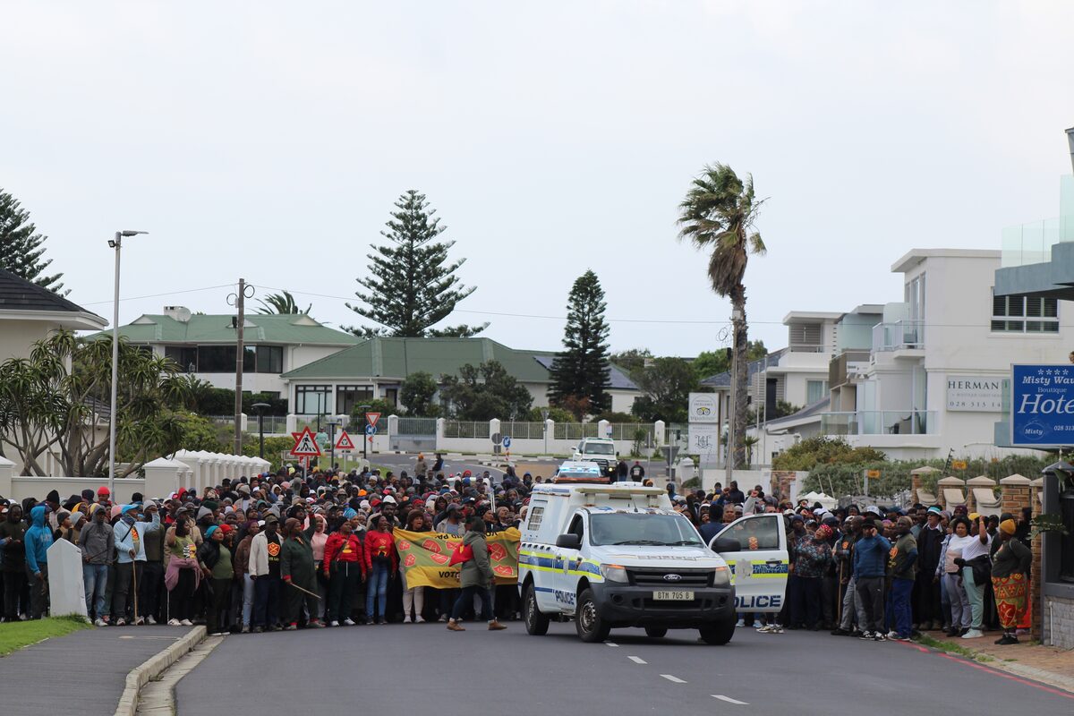 He concluded by requesting people to “remain orderly” as they marched through the town of Gansbaai to the police station on other side of town to hand over the memorandum to authorities.