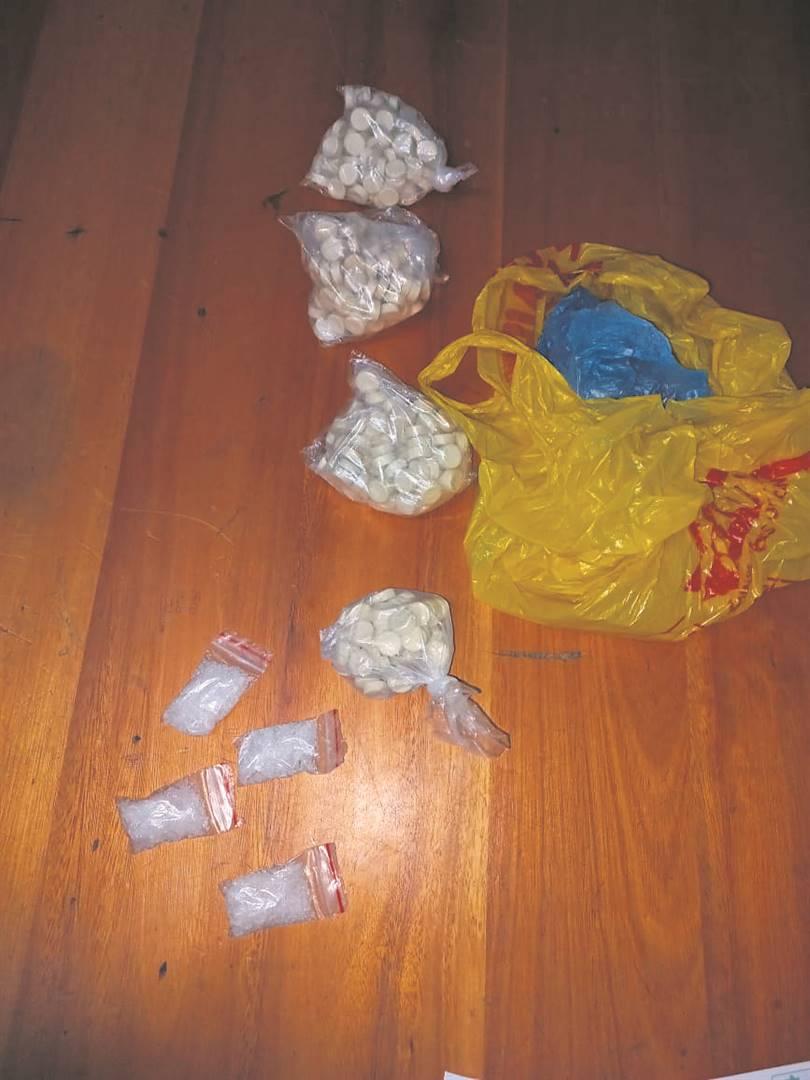 By nadere ondersoek het die beamptes 400 mandrax-tablette in ’n plastieksak binne-in die ruimte waar die noodwiel gestoor word, gevind.