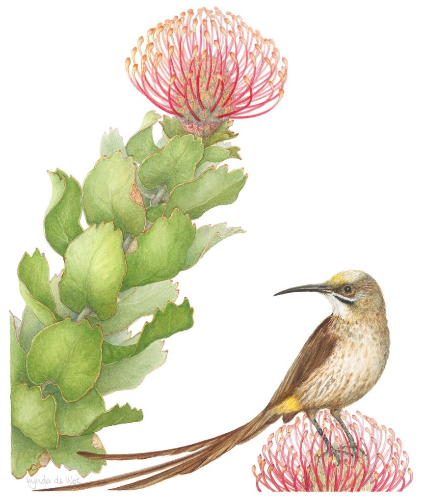 This unique collection of botanical illustrations by local and international artists, depicts the rare, endangered and charismatic plants found in the Grootbos Private Nature Reserve and surrounding regions. What makes the artworks especially distinctive is the inclusion of insects, pollinators and other creatures associated with specific plants.