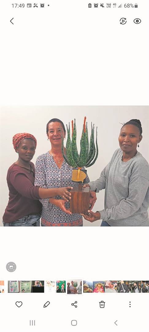 The huge aloe was commissioned by Duckitt, as a well-deserved “award” to Ikhala Trust for serviced rendered to communities over the past 20 years. It was constructed with wire and beading, so typical of rural art in the Eastern Cape.