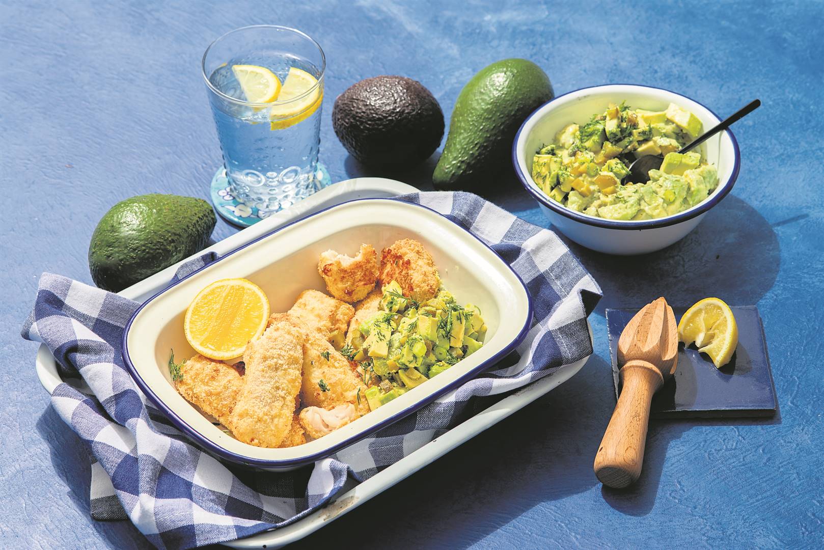 - Serve the fish with the second diced avocado, tartare sauce and wedges of lemon. Garnish with dill.