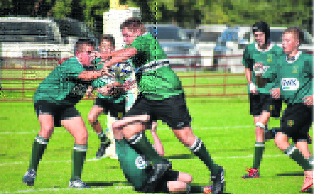 Marlow se o.14A-rugbyspan het hul rugbyseisoen op ’n goeie voet afgeskop deur Landboudal met 22-0 te klop. Die nuwe Wolrammetjies het met oorgawe gespeel en is beloon met ’n oorwinning in hul eerste wedstryd vir Marlow. Hier dryf Marlow se vurige stut, Johan Richter, sterk met die bal doellyn toe. Foto:VERSKAF