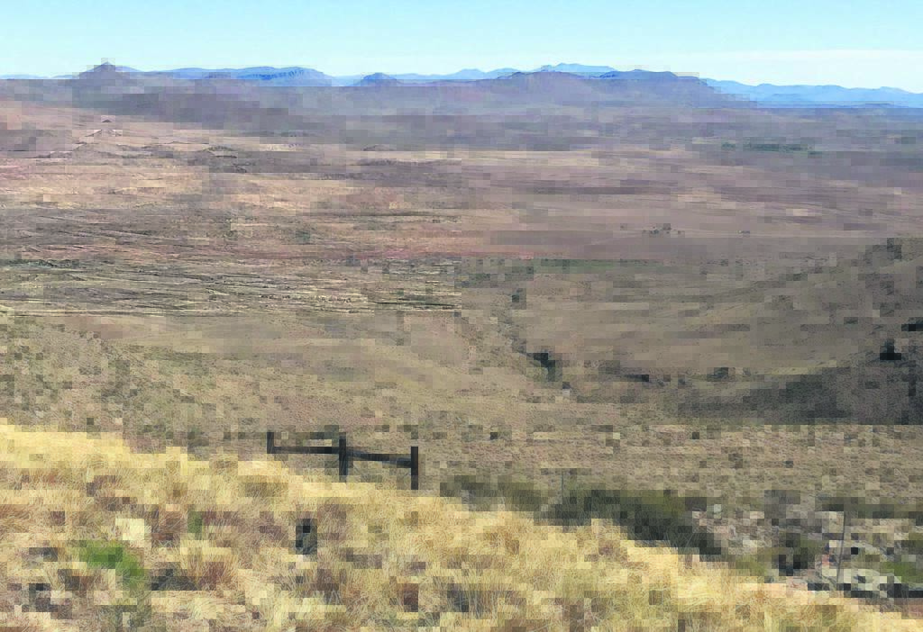 Die landskap vanaf die uitkykpunt op Lootsbergpas, tussen Middelburg en Graaff-Reinet, was op 29 Oktober 2019 (foto bo) vaal en dor. Op 10 Maart 2020 (foto onder), was die verskil wat die bietjie reën wat sedert Januarie oor die sentrale Karoo geval het, duidelik. Hoewel boere dankbaar is oor plaasdamme wat weer water het, is damvlakke van Karoodorpe steeds baie laag. Foto’s:ELSABé PIENAAR