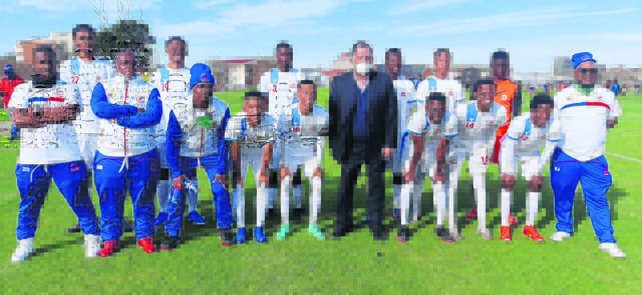 Seven Stars FC players and technical team with SAFA president, Dr Danny Jordaan, in Gqeberha.Photo:THANDO MGEDEZI