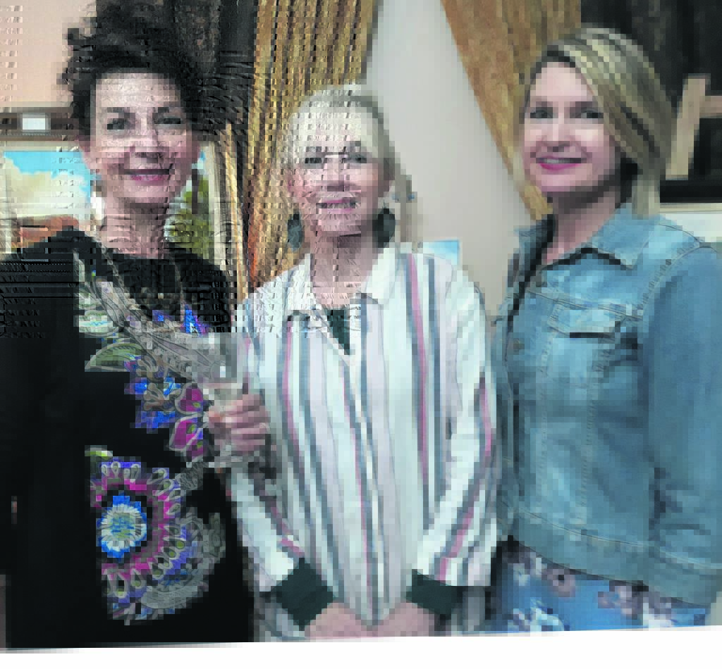 Skilders onder leiding van Lou Venter het onlangs hul derde jaarlikse uitstalling van skilderye by Cathy se gastehuis in Cawoodstraat op Cradock gehou. Daar was groot belangstelling in die olieverf-skilderye wat hoofsaaklik uit Karoo-natuurtonele, portrette en stillewes van alle groottes bestaan het. Die skilderye kan vir die volgende paar weke by dié gastehuis besigtig word. Hier is (van links) Hanli Venter, Jessie Pretorius en Elsabe van der Merwe by die uitstalling. Foto:WILNA DE KLERK