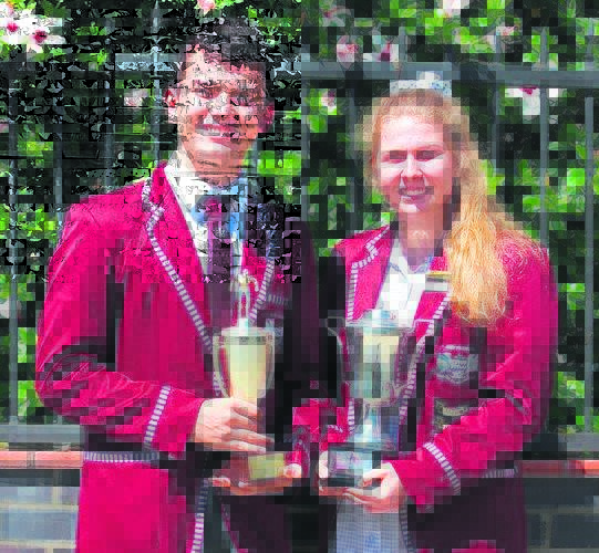 Swemmers van die Hoër Volkskool, Gill College, Cradock Hoërskool en Hoër Landbouskool Marlow het tydens die Karoogala twee rekords laat spat. Andrew Fischer (Union High) se seuns o.16 50m-vlinderslagrekord van 2009, het in die slag gebly toe Izak Hattingh van die Hoër Volkskool dit verbeter het. Llewellyn Crewe-Brown het ’n nuwe rekord in die 50m-vlinderslag vir seuns o.19 opgestel. Die top meisiespanne is Volkskool, Union High en Cradock en die top seunsspanne is Volkskool, Union High en Marlow. Die Victor Ludorum word deur (van links) Izak Hattingh en Llewellyn Crewe-Brown gedeel, terwyl Marlien Crewe-Brown die Victrix Ludorum is. Foto:VERSKAF