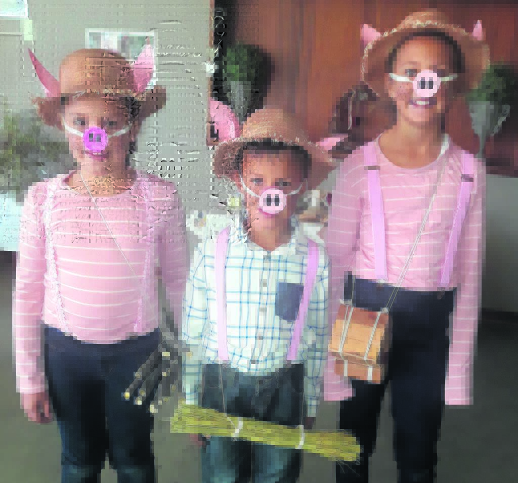 Daar was groot opgewondenheid by die Cradock Voorbe-reidingskool toe die leerders in kostuums, wat hul geliefde storiekarakters voorstel, kon skool toe gaan. Dit was ’n bont kleurspel soos hulle hul beurte afgewag het om op die verhoog te verskyn en aan te kondig wie hulle voorstel. Daar was feetjies, Liewe Heksie, Goue Lokkies, Pinnochio, konings, “cowboys”, en selfs Jan en die boontjierank. Sommige onderwysers en studente het saamgespeel en in kostuum opgedaag. Hier is die drie varkies Marizette, Niele en Nerine Lategan. Foto:WILNA DE KLERK