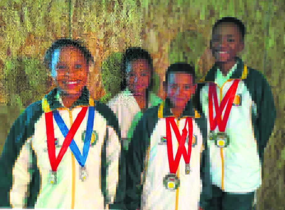Karateka from JKS Humansdorp Karate Dojo secured several medals at the recent championships in Johannesburg: (from left) Erin Dolph (silver kata, bronze kumite), Brady Lappert (gold kumite), Maron Lippert (bronze kata, bronze kumite) and Jade Maqanda (bronze kata, bronze kumite). Lippert and Maqanda qualified to represent South Africa at the World Shoto Federation Karate-do Championships in Ireland in August this year. Photo:SUPPLIED