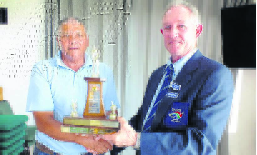 Kouga Sages het op 13 en 14 Mei die jaarlikse Vyfhoekige Gholftoernooi op St. Francisbaai aangebied. Sestig spelers van vyf Sages-streke in the Suid- en Oos-Kaap het om die wentrofee meegeding. Spelers van die Suid-Kaap streek het met ’n gemiddeld van 60,11 punte as oorwinnaars uit die stryd getree, gevolg deur die Oostelike Provinsie (57,4 punte) en Outoniqua (56 punte). Kouga (55,2 punte) en Grens (53,7 punte) het onderskeidelik vierde en vyfde geëindig. David Roberts (Suid-Kaap) ontvang the wentrofee van George Lawrie (Kouga). Foto:VERSKAF