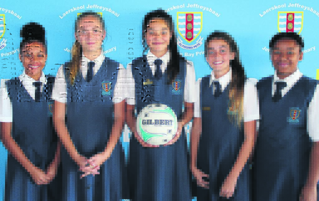 Die Laerskool Jeffreysbaai-netbalspelers Gabby Willemse, Brogan Lubbe, Kelly Coetsee (kaptein van die o.13 Oos-Kaapspan), Lily Veirra da Cruz (onderkaptein van die o.13 Oos-Kaapspan) en Kaitlynn Dicken (o.12) is in die Oos- Kaap-netbalspan opgeneem. Foto:VERSKAF