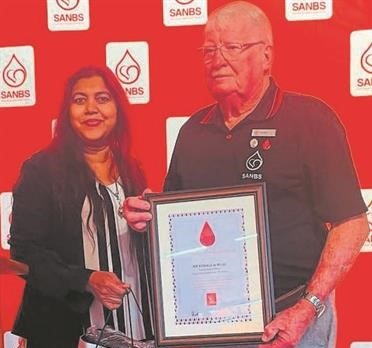 Albert Venter (76) from Jeffreys Bay received the highest milestone for a staggering 250 units of blood donated – a life-long commitment. His motivation? To help others.