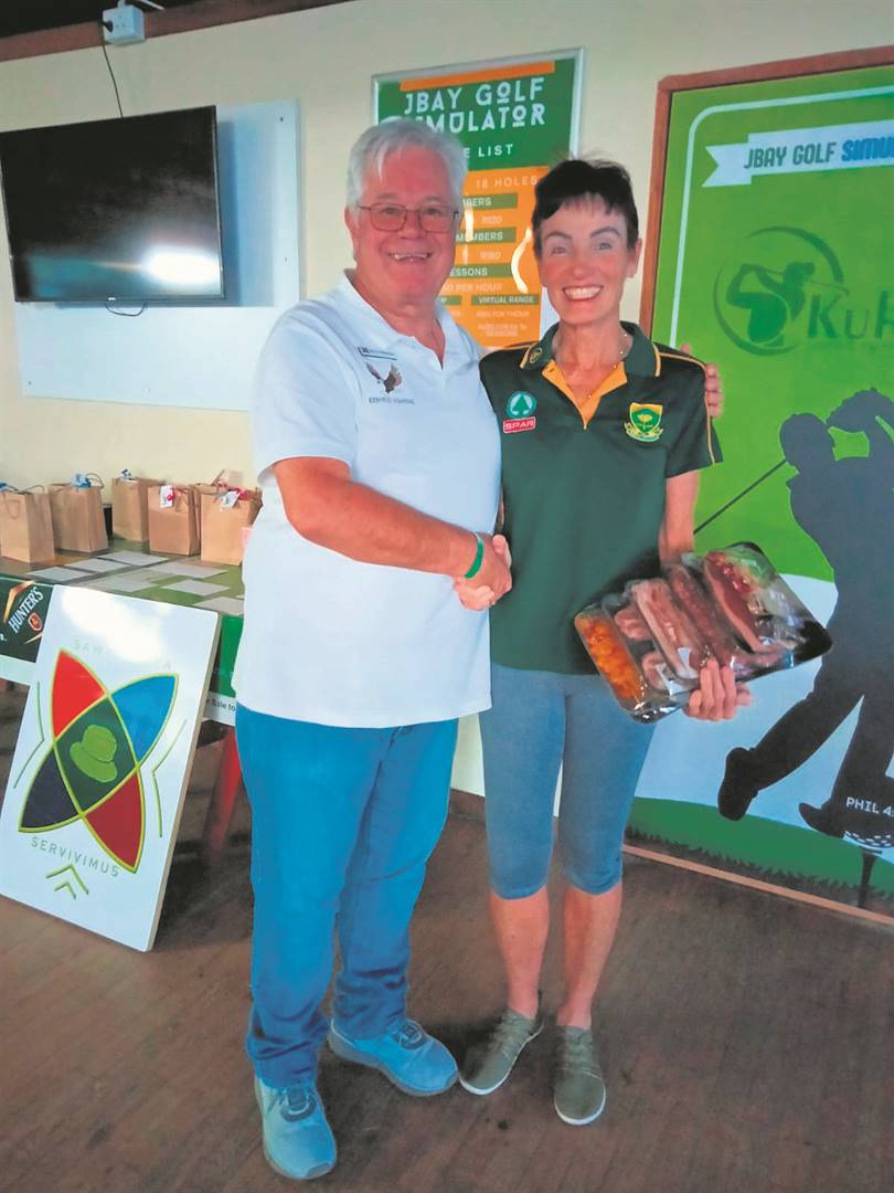 Deon Wessels, treasurer of Kouga’s South African Defence Force Association and Celeste van Rie, the winner of the women’s category.